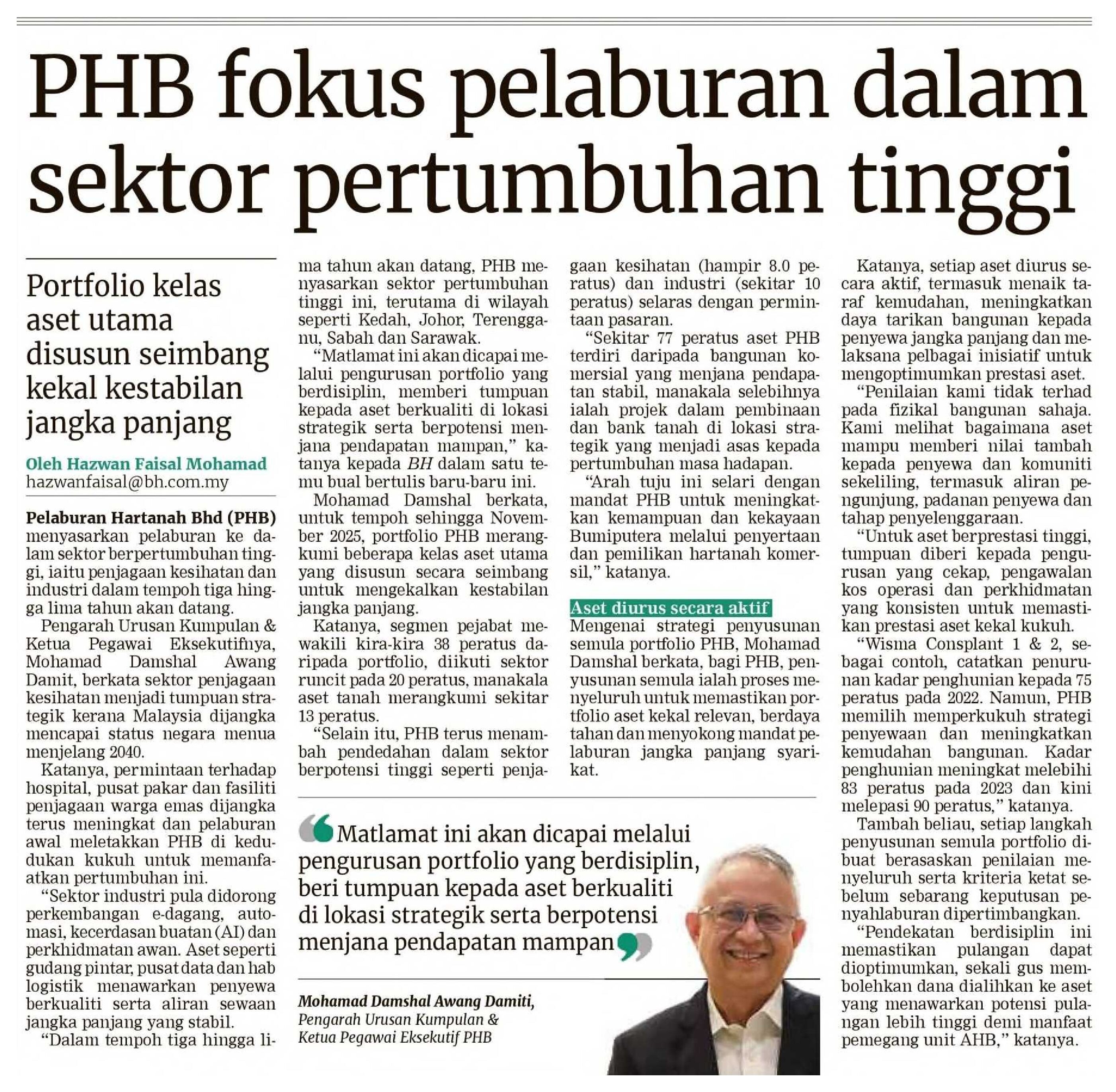 Berita Harian - PHB fokus pelaburan dalam sektor pertumbuhan tinggi