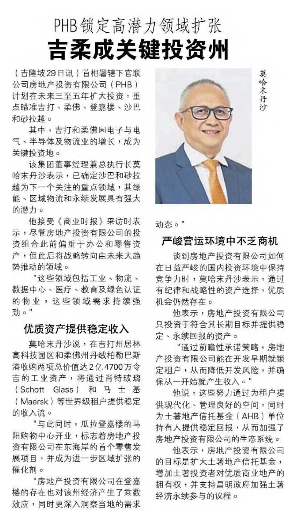 Nanyang Siang Pau - PHB focuses on expanding into high-potential sectors, with Kedah and Johor becoming key investment states