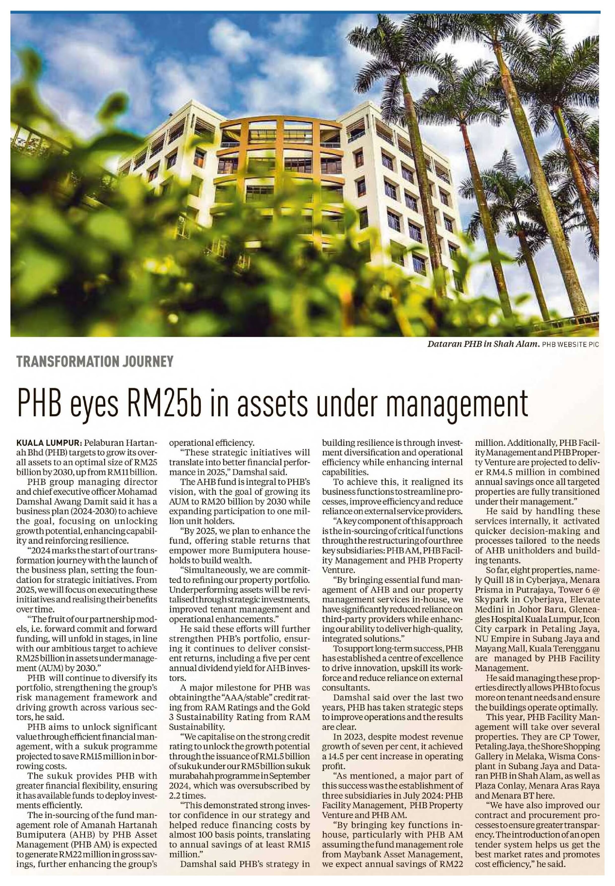 News Straits Times - PHB eyes RM25b in assets under management