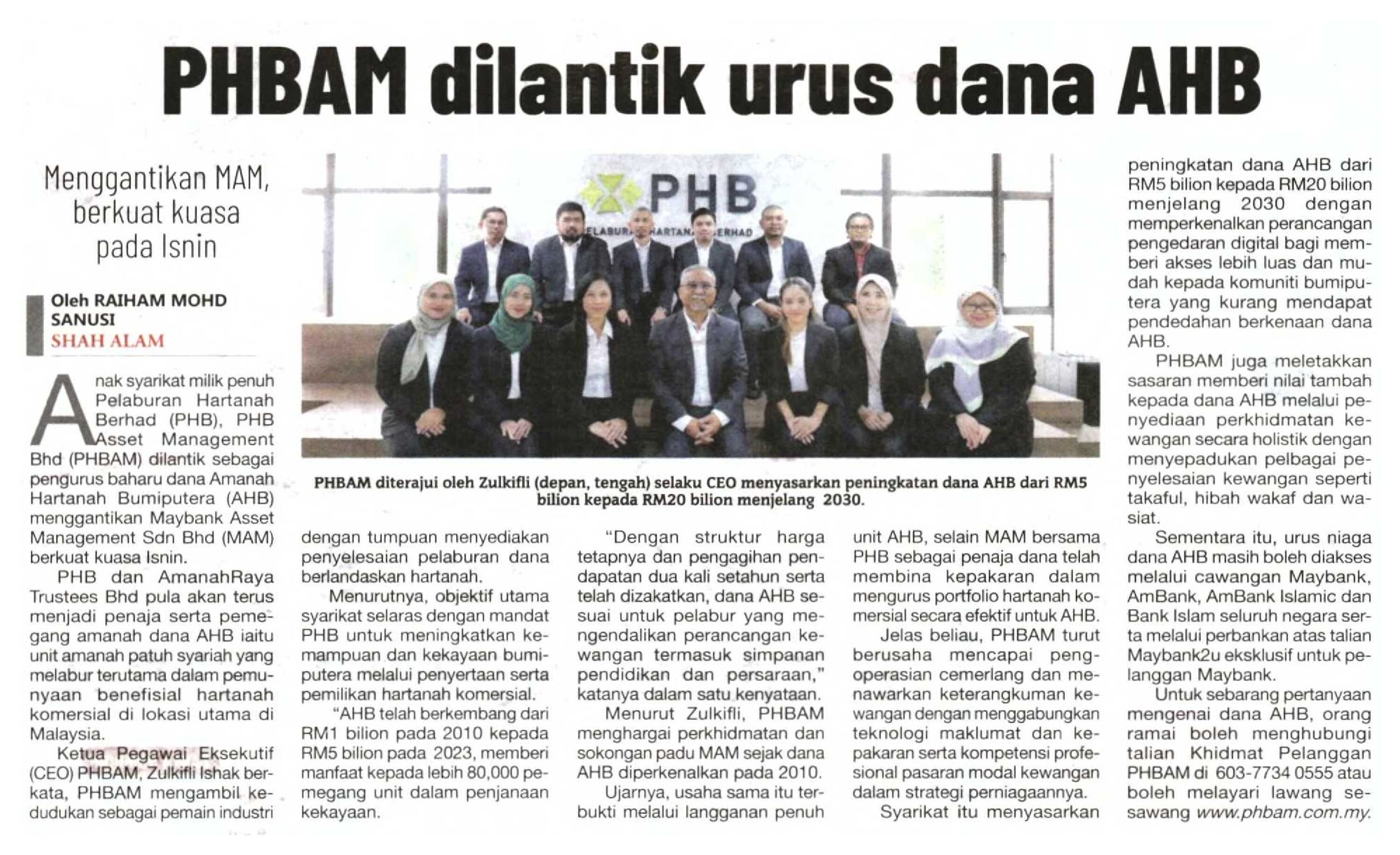 Sinar Harian - PHBAM dilantik urus dana AHB