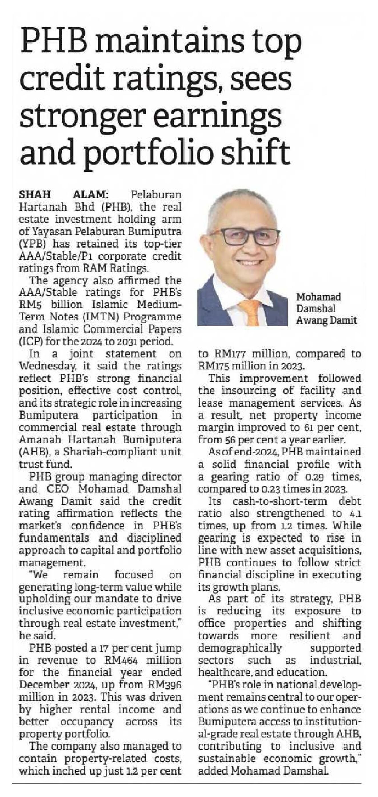 The Borneo Post Sabah - PHB maintains top credit ratings, sees stronger earnings and portfolio shift