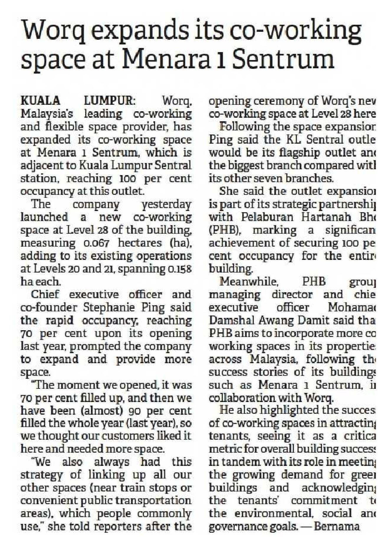 The Borneo Post Sabah - Worq expands its co-working space at Menara 1 Sentrum