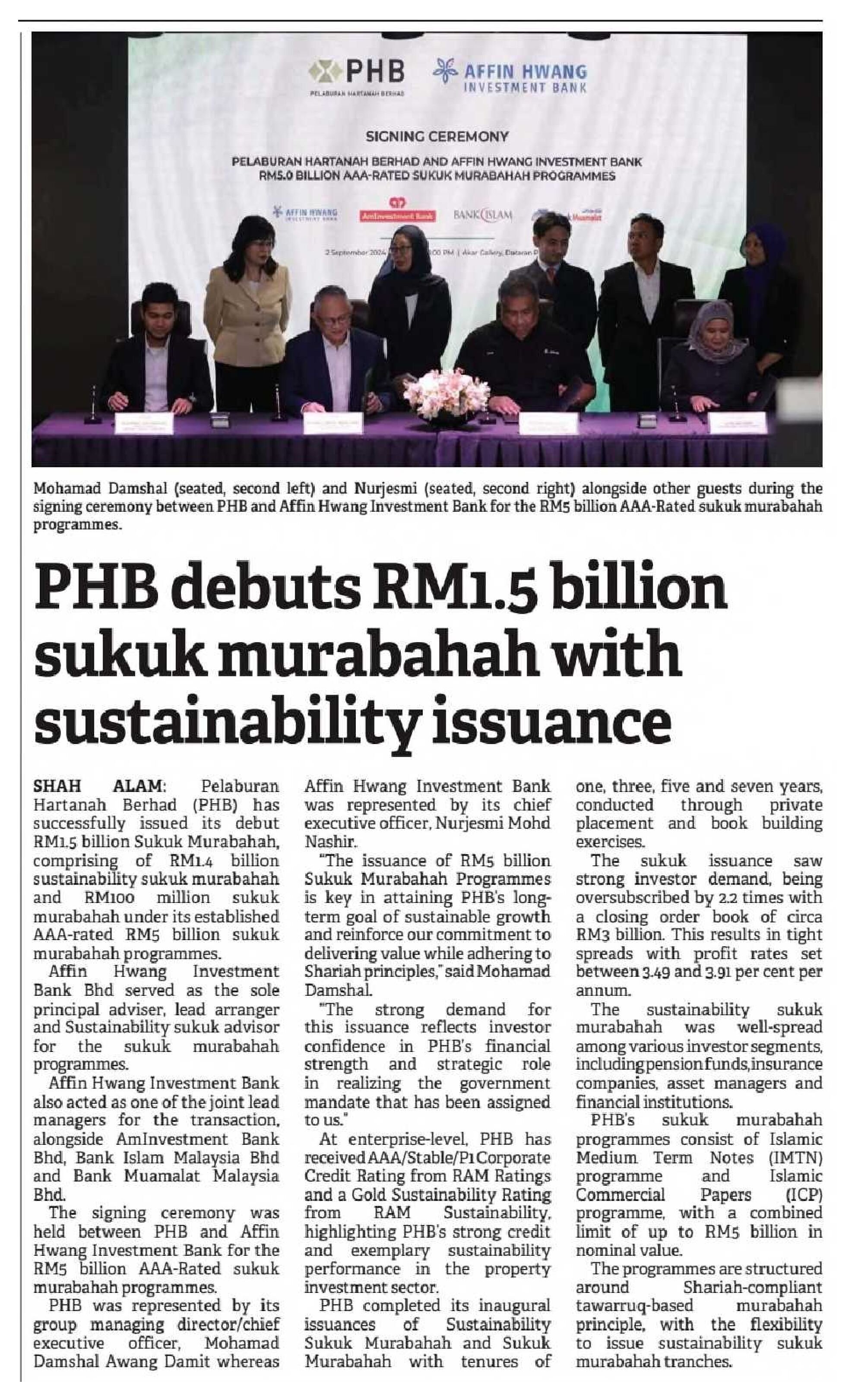 The Borneo Post Sarawak - PHB debuts RM1.5 billion sukuk murabahah with sustainability issuance