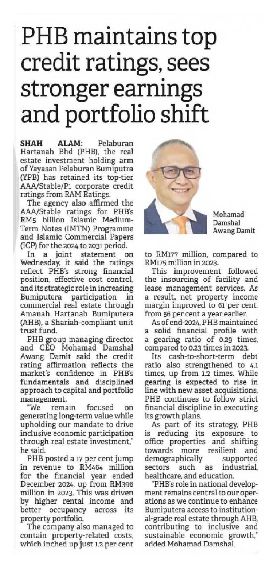 The Borneo Post Sarawak - PHB maintains top credit ratings, sees stronger earnings and portfolio shift