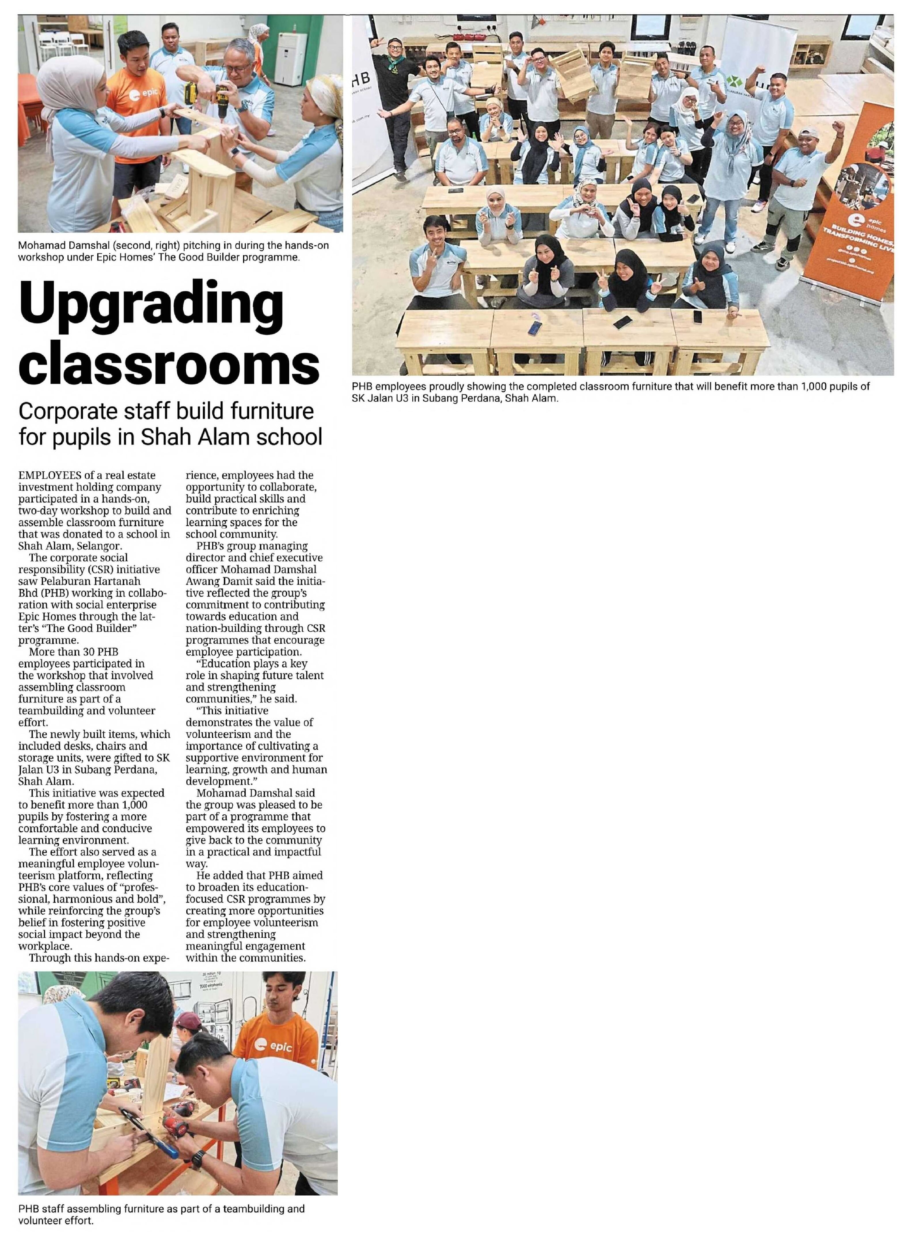 The Star - Upgrading classrooms, Corporate staff build furniture for pupils in Shah Alam school