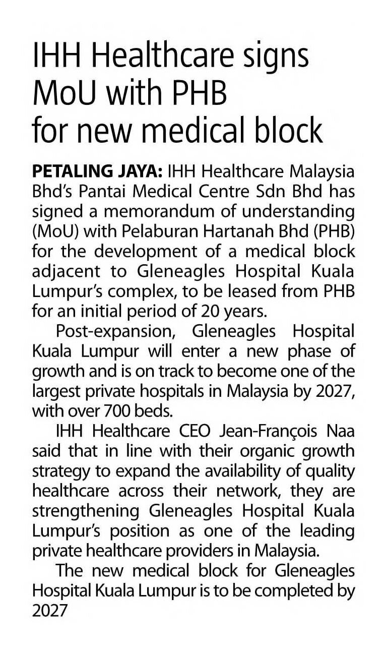 The Sun - IHH Healthcare signs Moll with PHB for new medical block