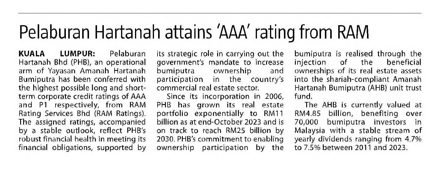 The Sun - Pelaburan Hartanah attains 'AAA' rating from RAM