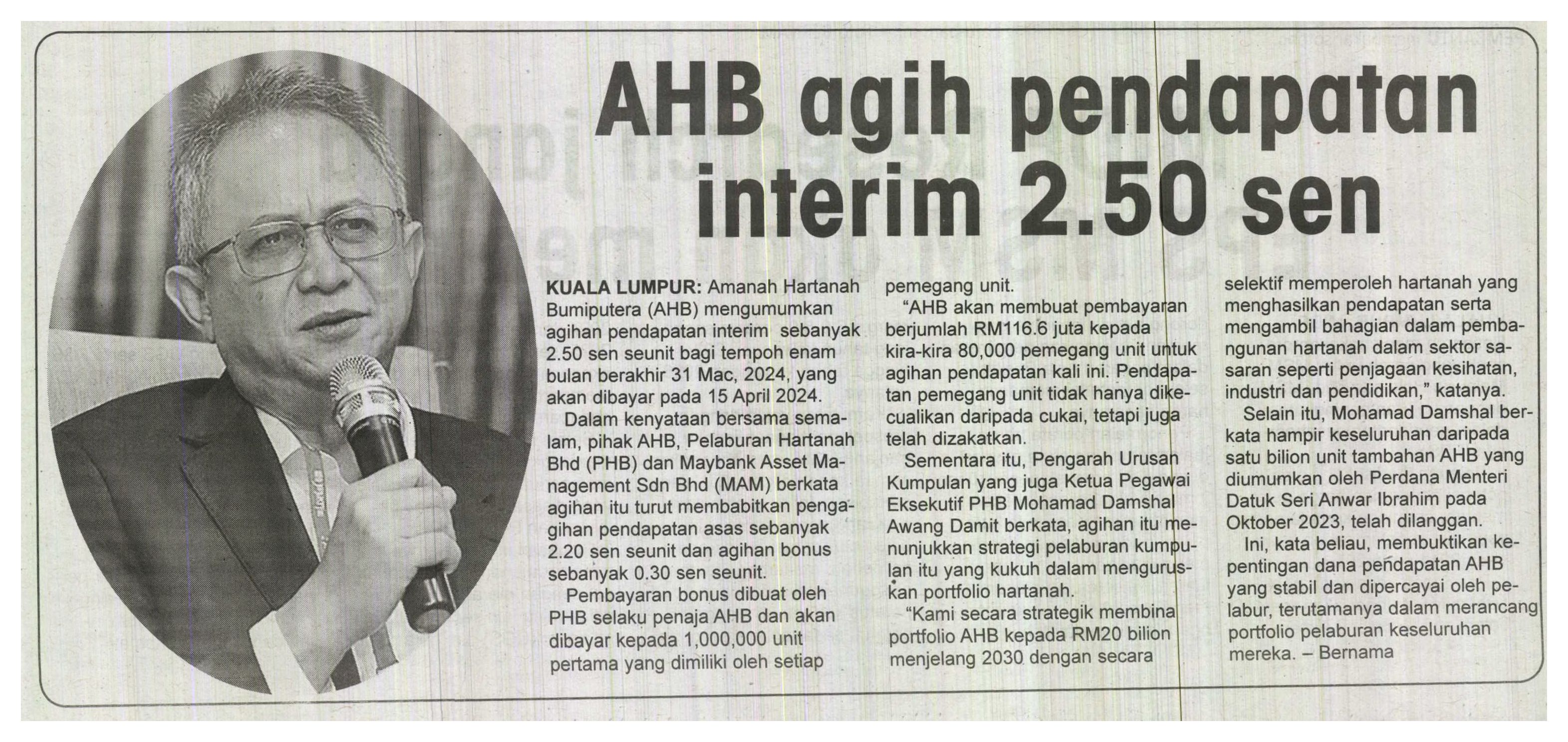 Utusan Sarawak - AHB agih pendapatan interim 2.50sen