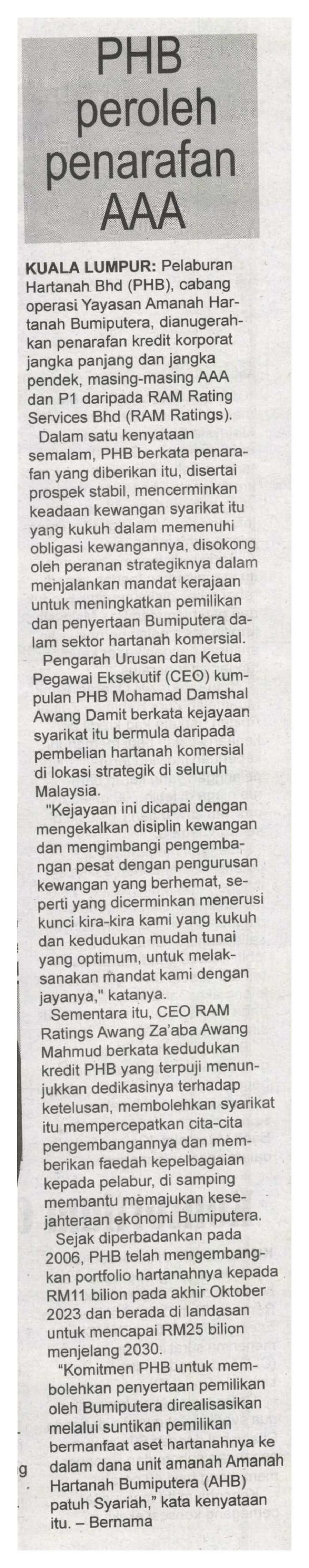 Utusan Sarawak - PHB peroleh penarafan AAA